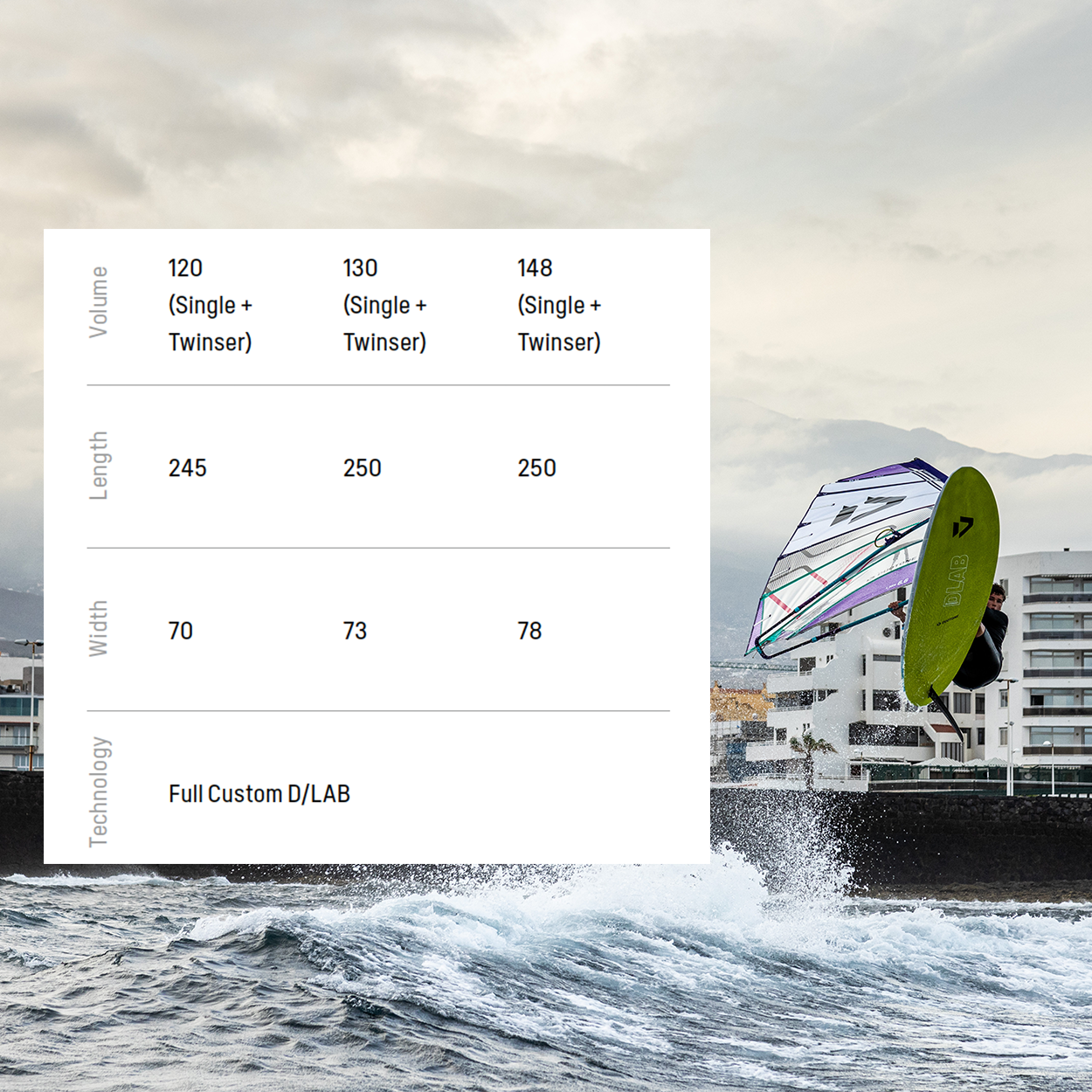 With the EAGLE and the brand-new BLITZ we offer 2 boards for the freeride >< freerace segment covering everything from learning to plain up to being the fastest sailor at your spot. Now imagine to combine this with the same high-end FULL CUSTOM D/LAB construction being used for the FALCON_FIN and there you have it: the EAGLE and BLITZ D/LAB CUSTOMIZED are the stiffest, lightest and earliest planing boards in their class. In fact they are over a kilo lighter than other comparable boards.