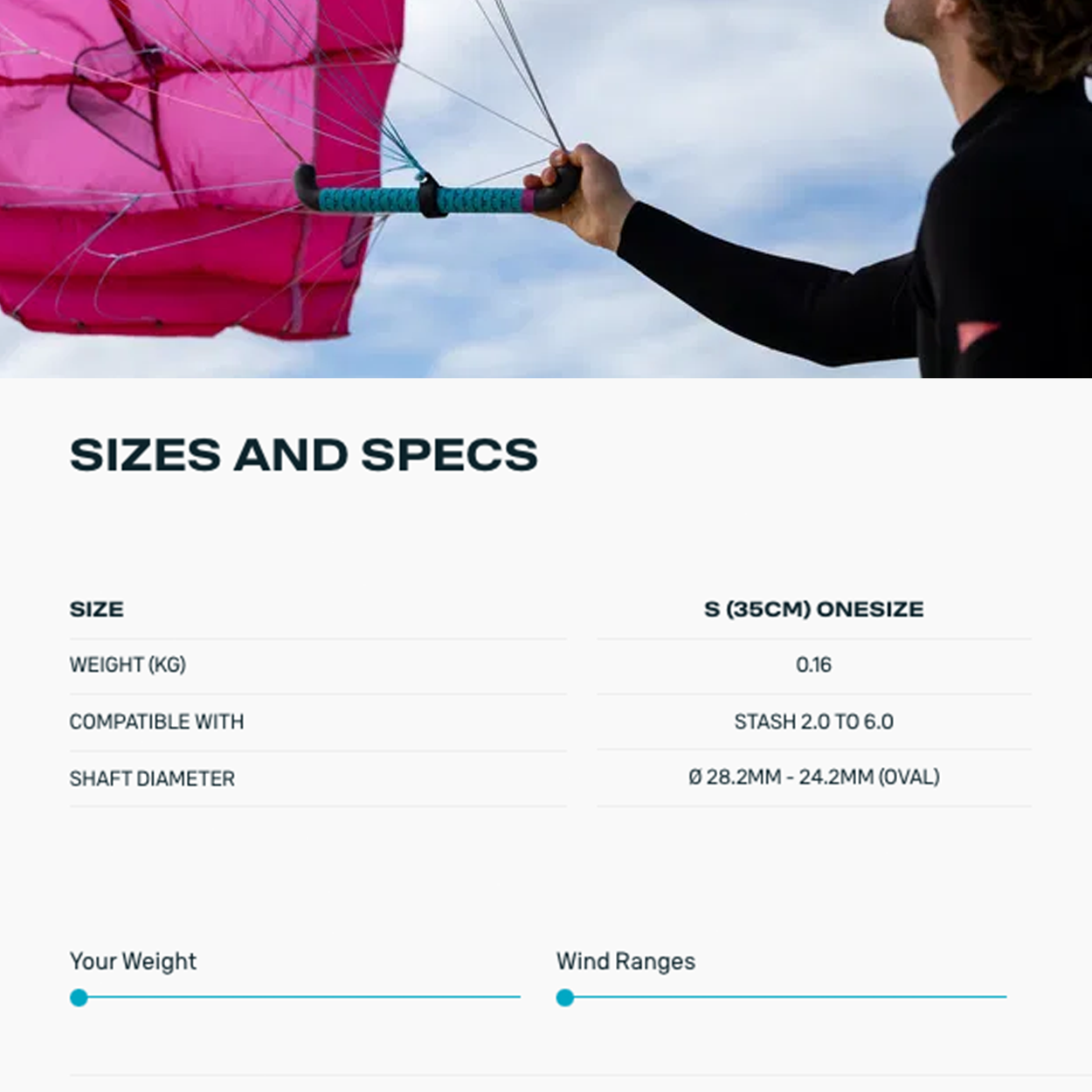 Control is key with a Parawing and the Stash delivers with a custom-molded handle designed for performance. Inspired by the trusted feel of Duotone wing handles, it features a rounded, ergonomic shape that ensures comfort in your hands and prevents lines from catching.