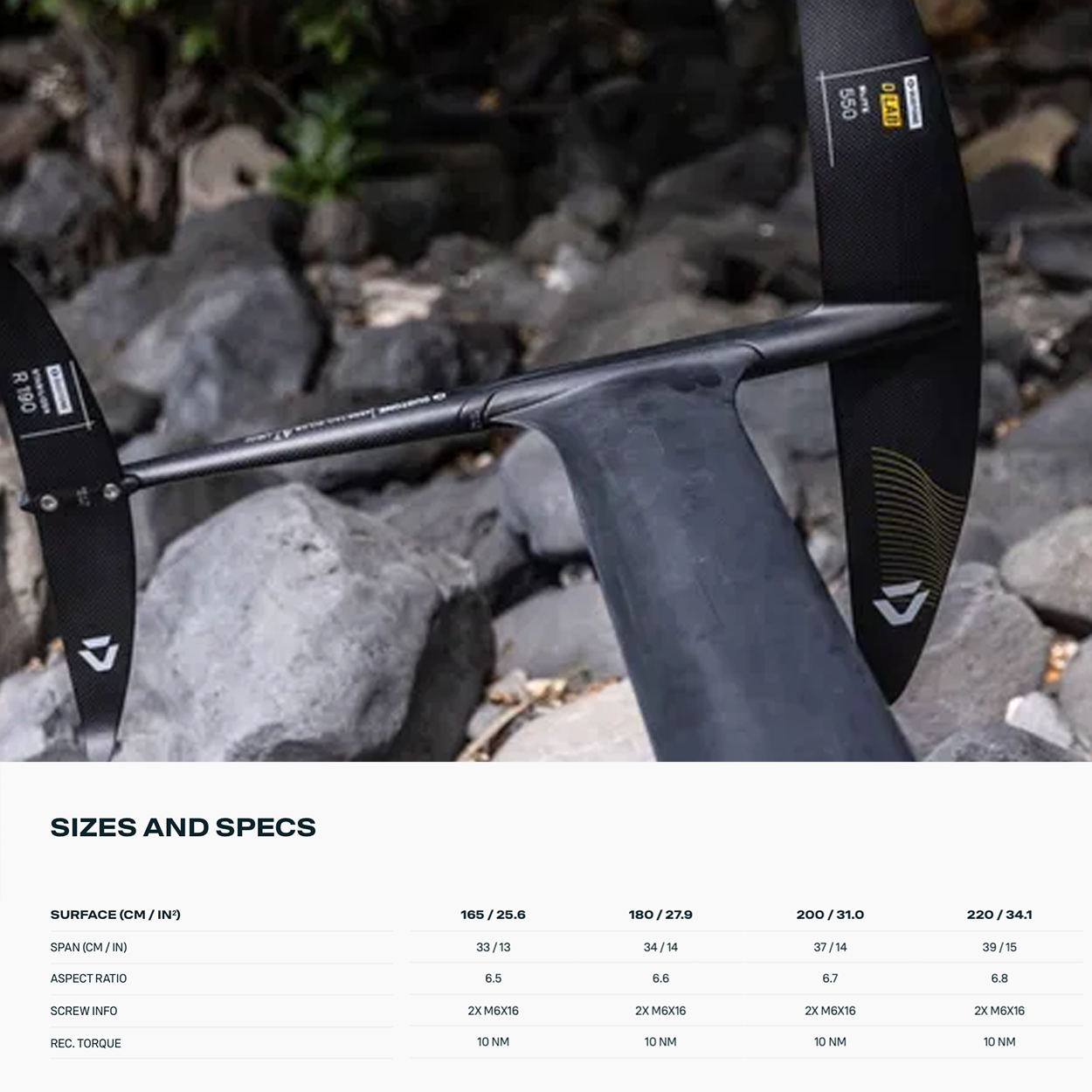 It features vertical winglets at the wingtips which help lock the yaw at high speed. The profile we selected features a low drag coefficient whilst giving us unmatched pitch stability. If you want to ride fast while keeping full control, you need our new R190 stab.Do not hesitate to play with our shims to fine tune your ride. More experienced riders will want to use the negative 0.3 or 0.6deg shims to reduce the angle of attack of the stab and lower the drag to a minimum, specially if being used in combination with our new 47cm tail and forth screw.