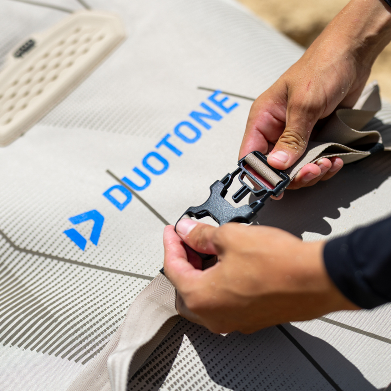 The Team Bag Wing delivers ample space for your wing foil equipment in a compact, travel-friendly design. The exterior is made from highly durable 100% recycled PET waste. Robust wheels let you glide effortlessly through airport terminals and sandy paths. The connective handle allows you to attach the bag to an airport trolley or your own trolley, while the sherpa belt keeps one hand free for the important things. A thermo-molded curv plate at the base adds stability and protects the most stressed area during travel, while bag breeze 2.0 prevents unpleasant odors and keeps your gear fresh with airflow.