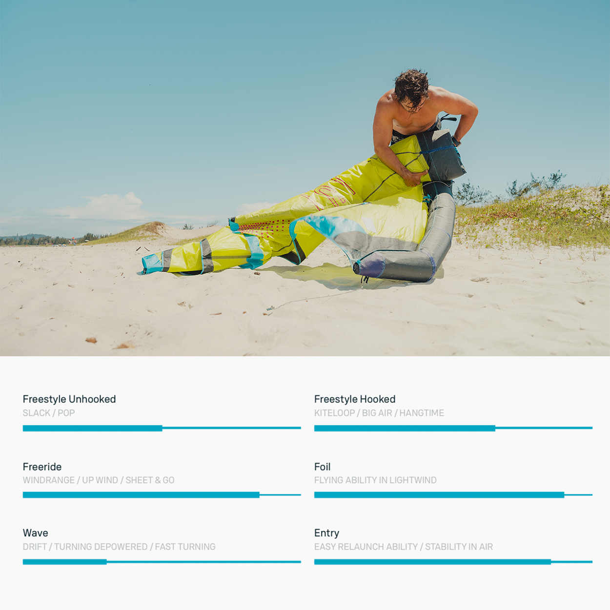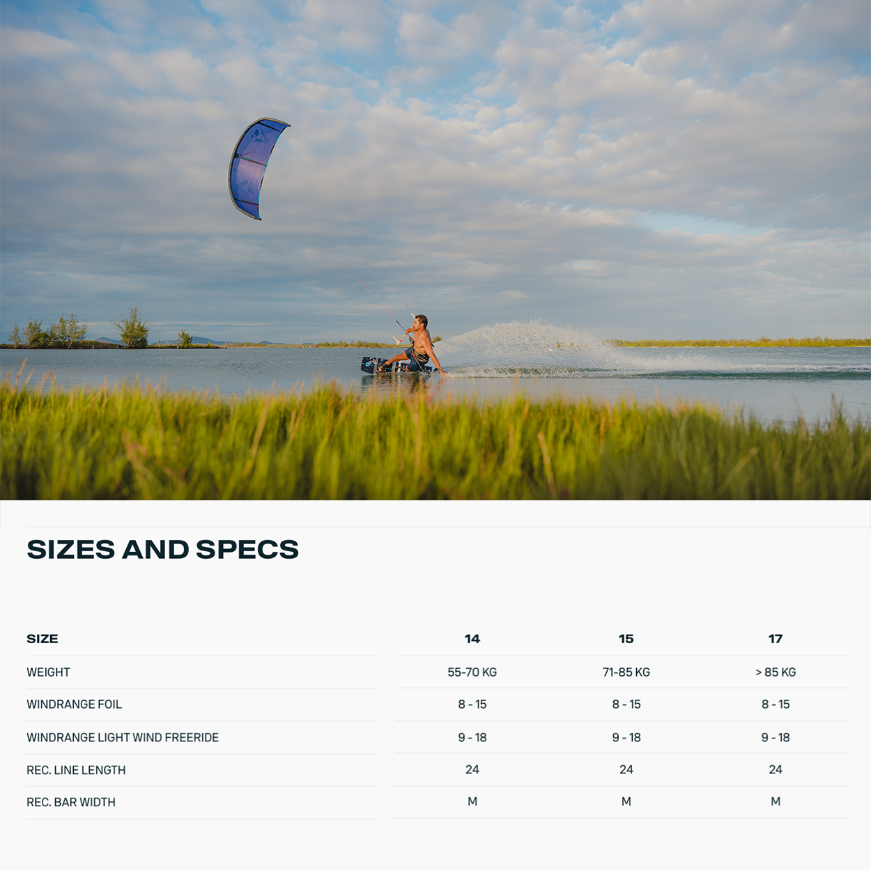 A main characteristic of the Juice is its excellent low-end, no matter if on a twintip, foil or even surfboard, you’ll be riding in the ligthest lull.