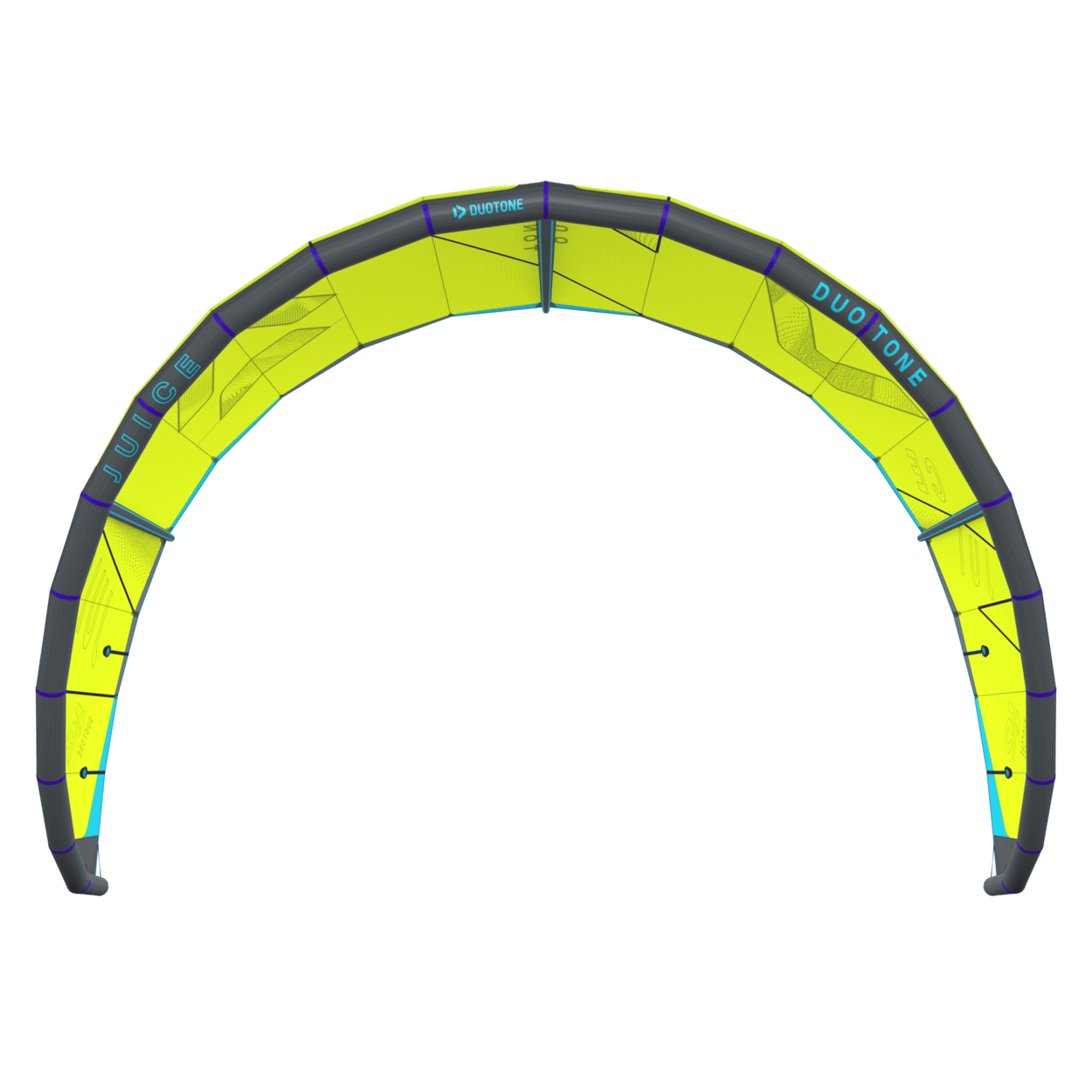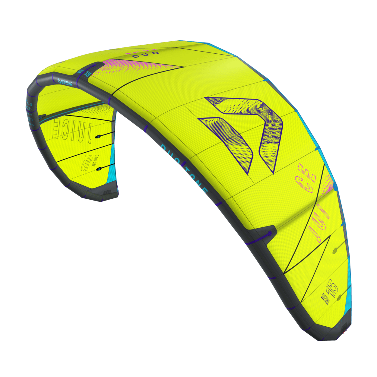 The Duotone Juice offers exceptional lightwind performance through its lightweight construction and meticulous design. Its optimized canopy shape ensures smooth power delivery, allowing you to harness the wind efficiently and start planing early, no matter if on a twintip, a foil or even a surfboard. With top-tier low-end performance, the Juice keeps you riding when others are stranded on the beach. The new design of the Juice sets it apart from its predecessors, boasting increased sweep for more effective water relaunch. The optimized wing tip profile ensures this easy water relaunch even in the lightest conditions, so you can focus on enjoying your session without interruptions. The radical lightwind design of the Juice ensures efficient upwind performance, letting you cover more ground with less effort. To minimize flutter and drag, it incorporates the lightweight batten pocket construction, enhancing the kite's responsiveness and overall smoothness. This light wind weapon now features a refined sweep design, ensuring you can get back up and ride quickly after the kite dropped. This modern redesign emphasizes superior upwind performance, ensuring you can maintain momentum and positioning even in the lightest breezes. With groundbreaking design improvements, this is the easiest Juice to jump with, delivering effortless lift and hang time even when the wind is low.