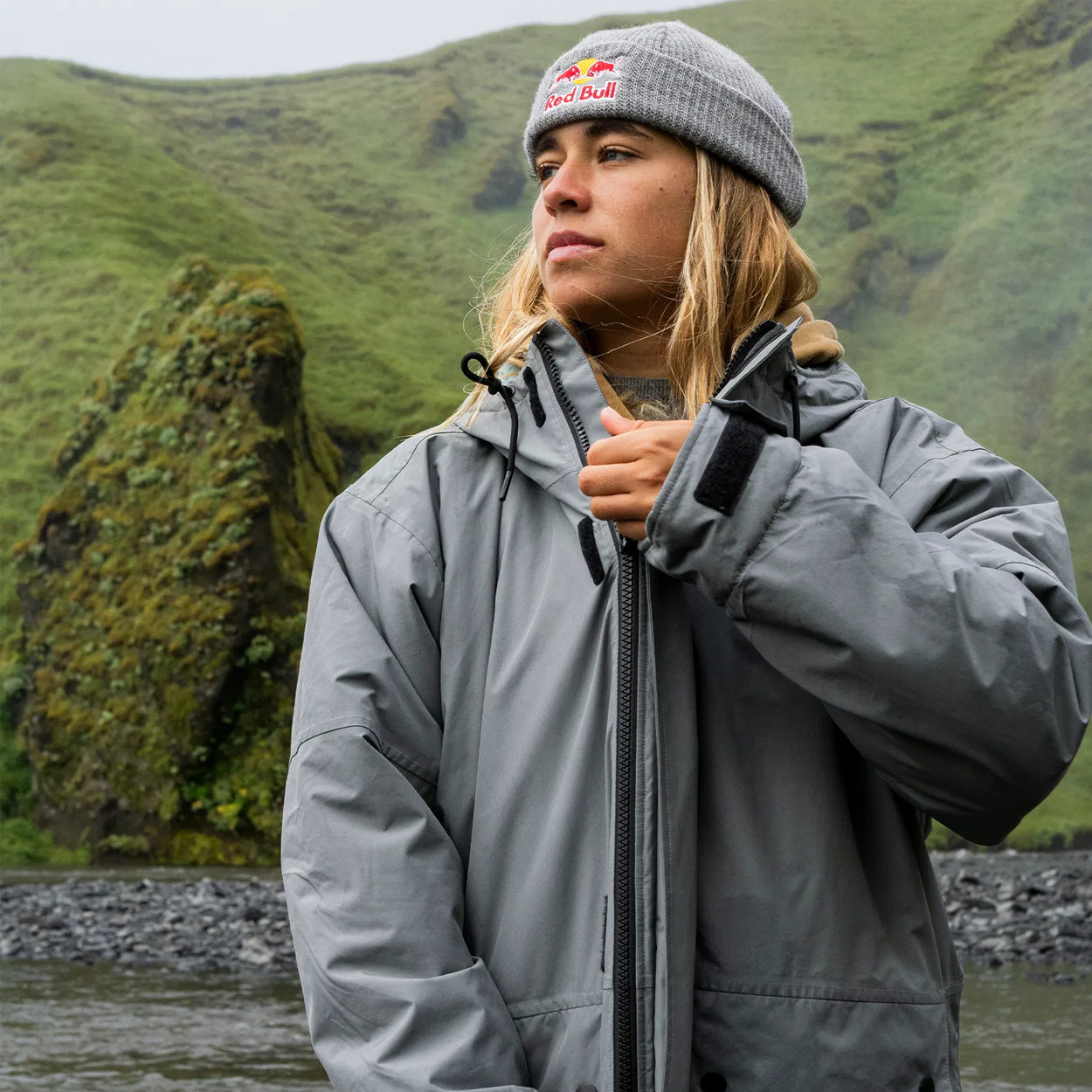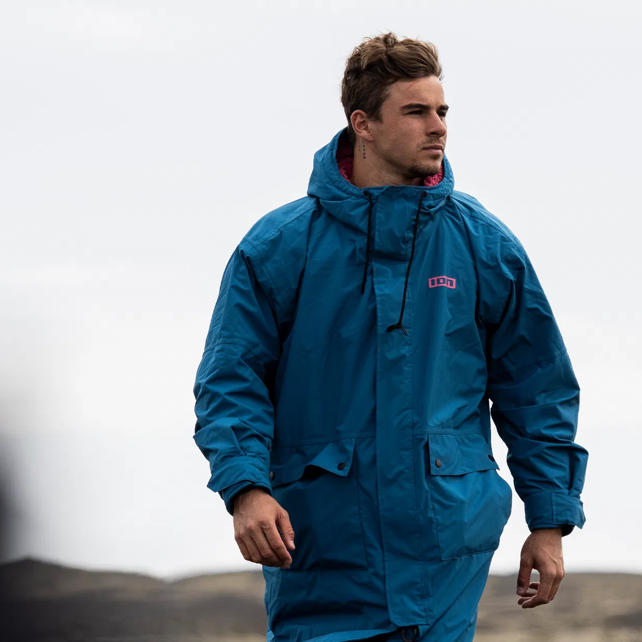 Master the elements — on and off the water. The Storm Coat is your mobile changing room and cozy outer layer in one. Its generous cut gives you plenty of space to slip in and out of your wetsuit with ease. Made from waterproof (8K) and breathable fabric with fully taped seams, it keeps wind, rain, and sea spray at bay — without making you overheat. Inside, soft teddy fleece lining delivers warmth and comfort, while fleece-lined hand pockets give frozen fingers a much-needed break. A rugged front zipper with an easy-grip puller makes for quick handling, even with gloves or cold hands. Whether you’re checking the spot at sunrise or defrosting after your session, the ION Storm Coat is your go-to for warmth and weather protection.