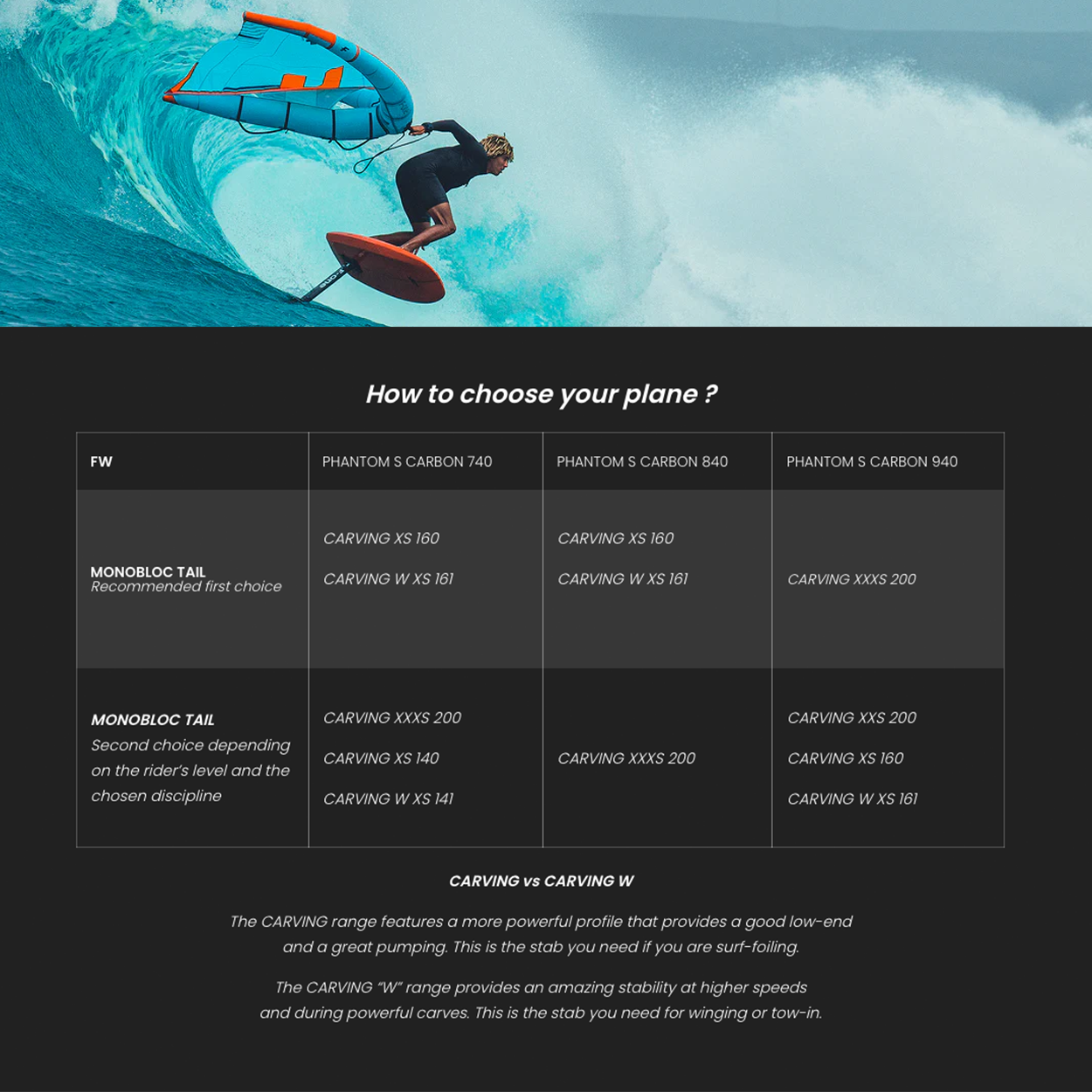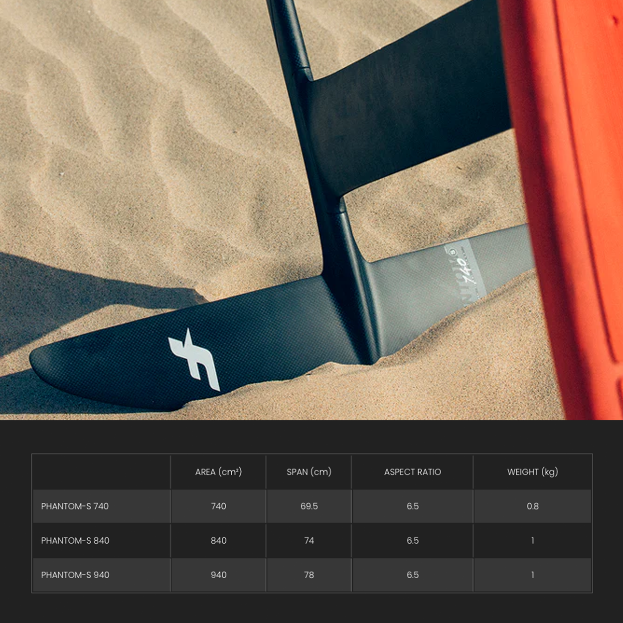 - The PHANTOM S 740 is the smallest and lightest size of the entire PHANTOM range. It is geared towards experienced surf foilers and elite wing foilers. It is the perfect choice to ride in big waves, and its small surface area also makes it highly efficient and enjoyable towing-in.