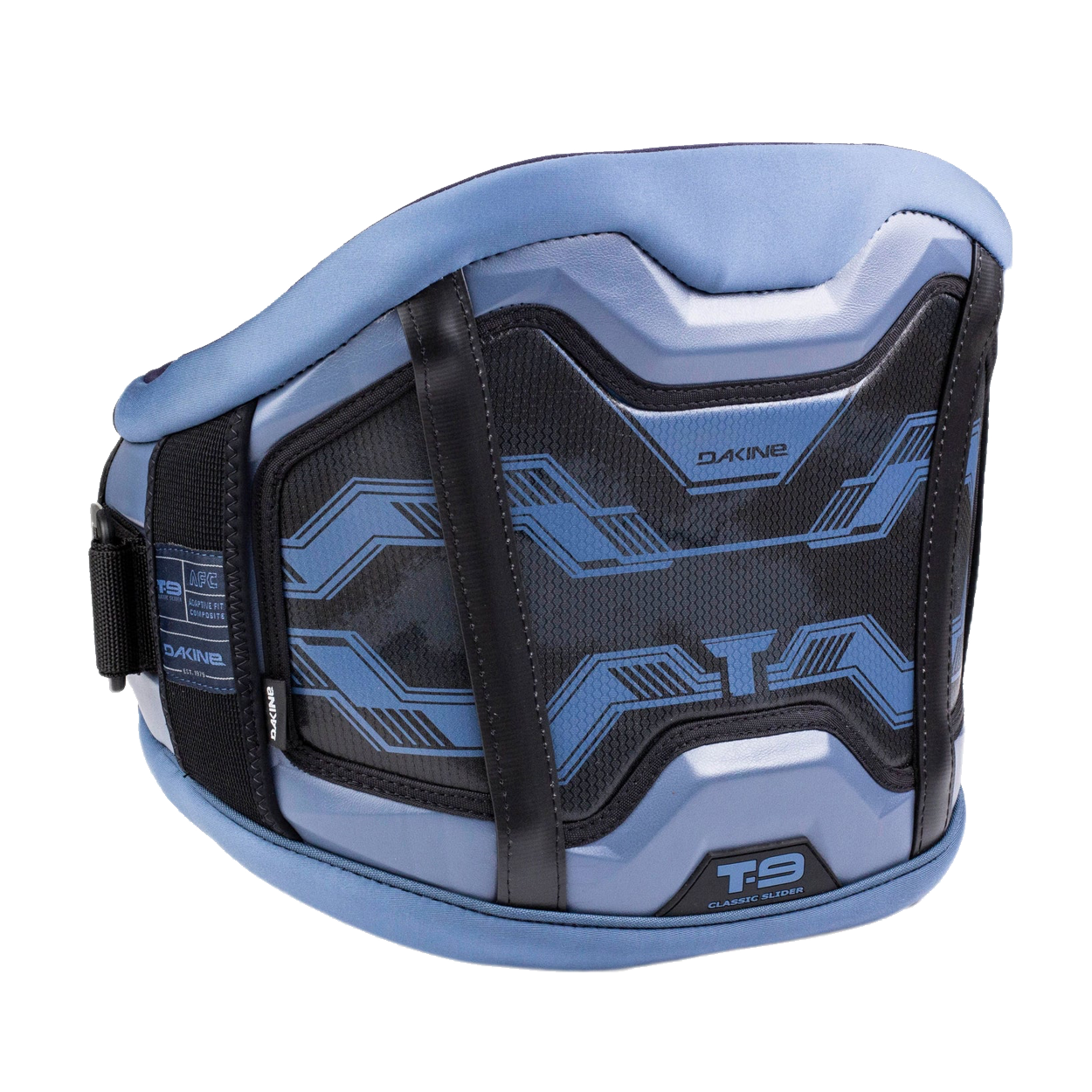 The Dakine T-9 Classic Slider Windsurf Harness is the latest in the popular T-series. It features an adaptive fit design that lets the backpanel conform to the shape of your body for hardshell custom comfort with all the rigidity and support you need for sailing. High-rebound memory foam pillows are strategically located in the rib zone and spine for comfort, while the backpanel features a silicone print pattern and EVA foam to keep the harness in place. The easy-in/easy-out spreader bar, a standard element of all T-series pieces, slides smoothly for maximum freedom while you're on the water.