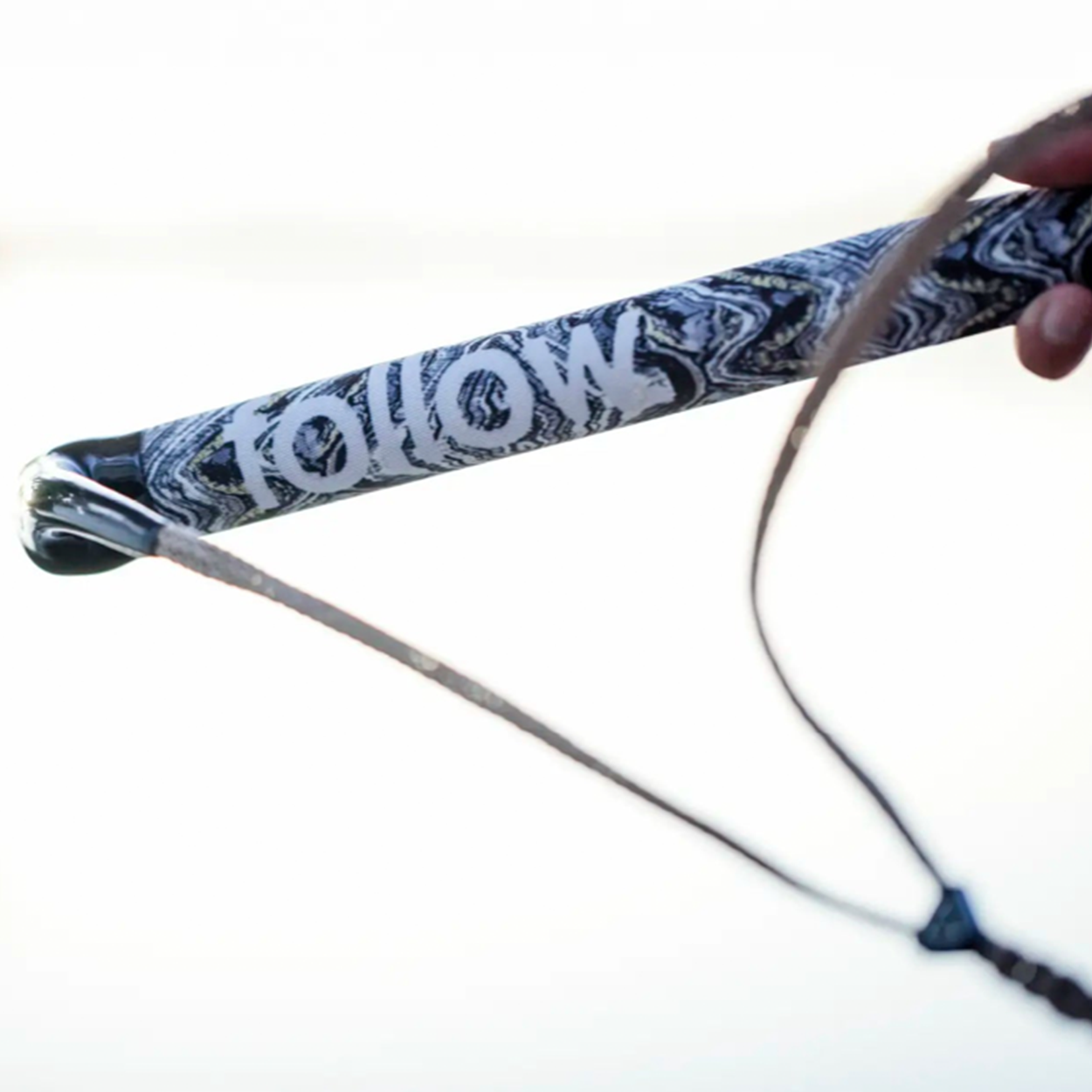 Soft and smooth. Stronger and with less twisting due to an even number of Dyneema strands. The internal Dyneema is also DWR treated to repel water absorption reducing its weight when wet. Feel the need to wrap your 9s? Then get this sucker. This 15-inch bar comes with a narrow suede grip so that the feel of the handle and T-Bar match giving the rider all confidence they need. Design to pair with one of our Pro Mainlines.