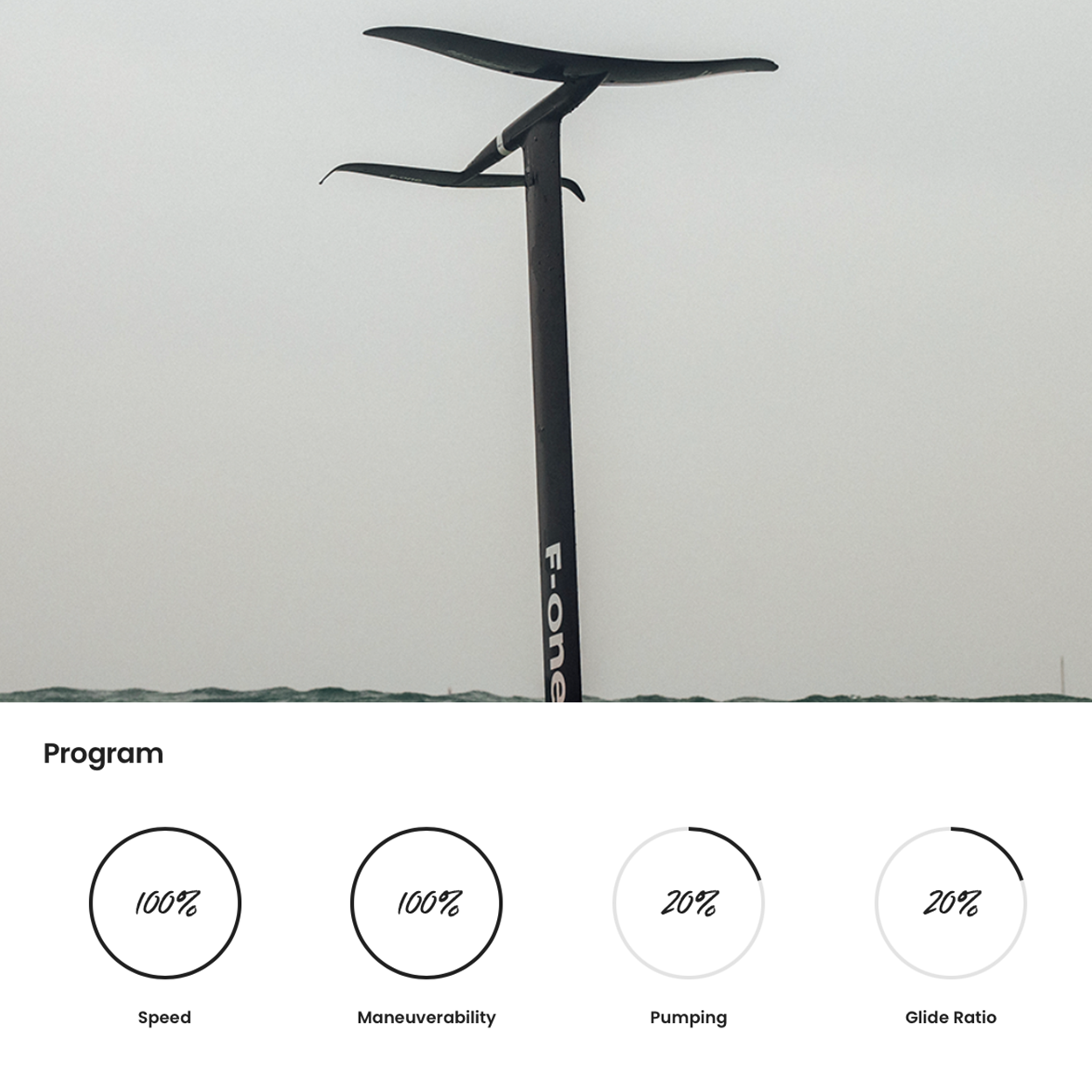 Designed to foil at high speeds with full control no matter the conditions, these foils will lead to incredible performances, but their “raisons d’être” are first and foremost to provide the most exhilarating ride on the water.