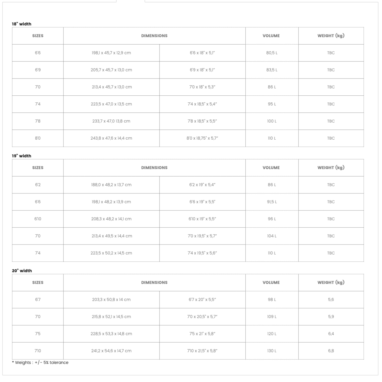 It is available in three different widths: 18” (80.5L – 110L), 19” (86L – 110L) and 20” (98L – 130L). This makes for a total of 15 different sizes to choose from depending on the needed volume and length, as well as the skill level of each rider. All boards are equipped with a full pad and the Twin-Tracks system for foil compatibility. These Twin-Tracks are positioned further forward to reflect the new balance of the board and again to facilitate take-off, pumping and flying behavior.