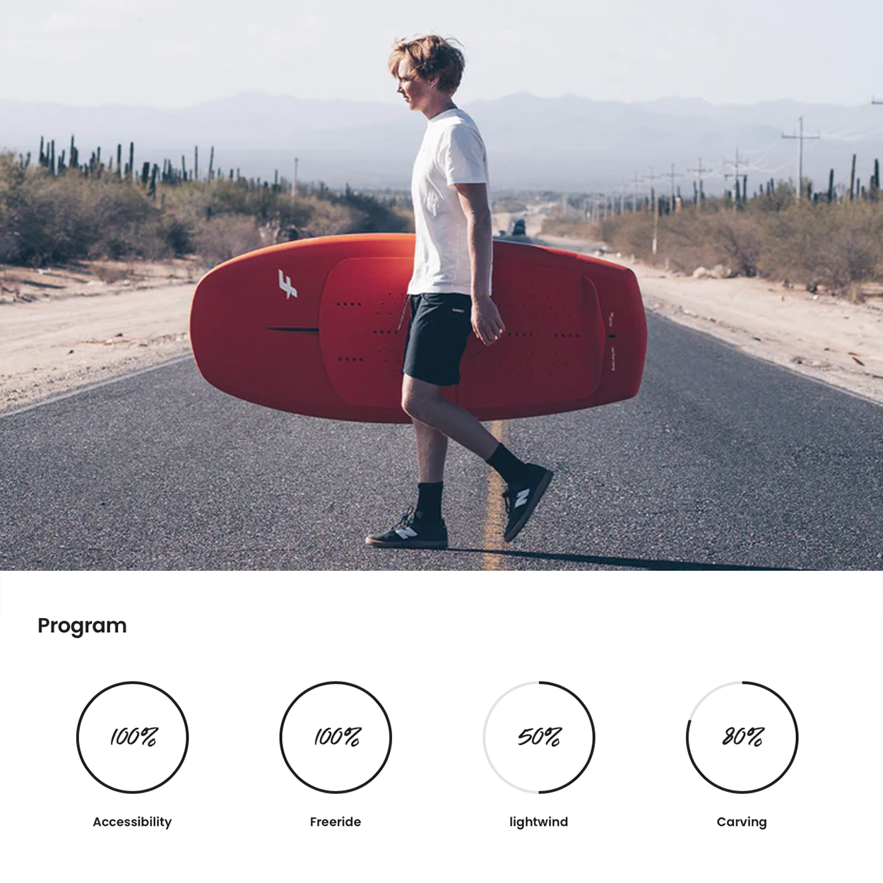 This board features a straight, optimized rocker line for an easy take-off and an intuitive ride. The sharp beveled rail profile and double concave hull shape will help you be up and flying in no time, and you won’t be unsettled when occasionally hitting the water or during touchdowns.